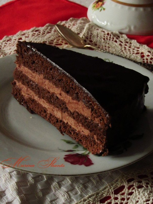 Шоколадный бисквитный торт с шоколадным кремом и шоколадной глазурью. Любители шоколадных тортов оценят точно!:))
