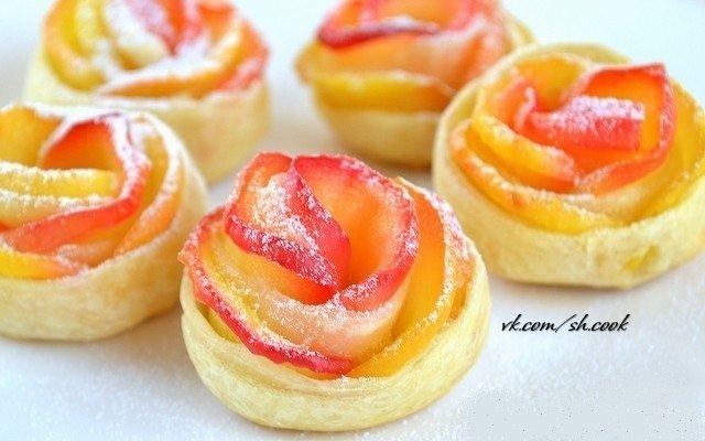 Нежные красивые слойки в виде бутончика розы.