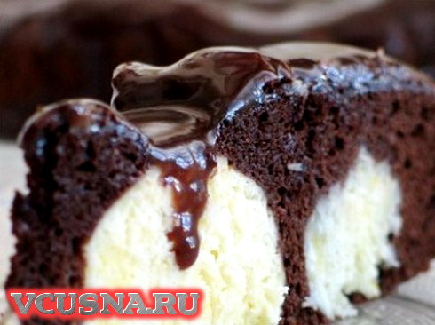 Тесто. Отделить белки от желтков. Взбить желтки с сахаром и ванилином до светлой гладкой массы. Добавить растопленный шоколад. Просеянную муку, крахмал, разрыхлитель, какао и соль ввести в яично-шоколадную массу и размешать.